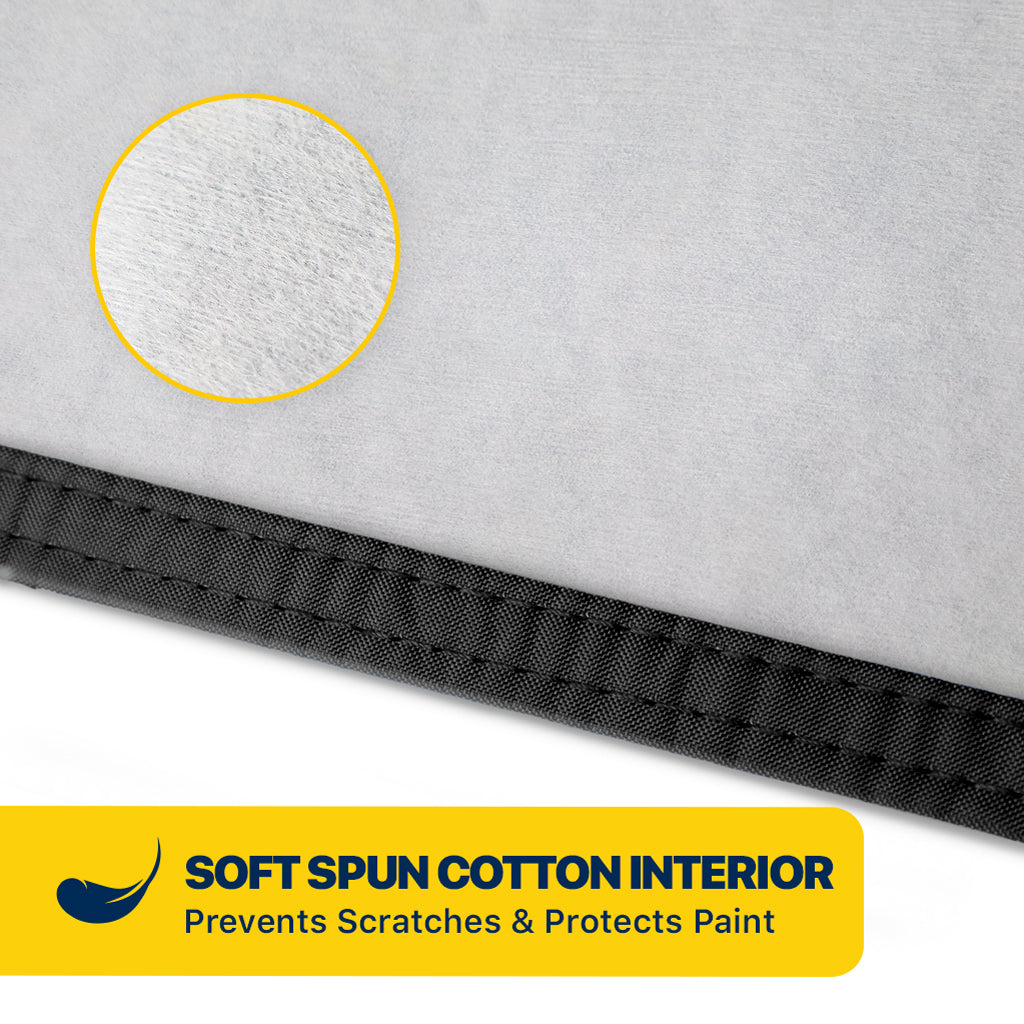 Made with premium waterproof fabric to keep your car dry and fully protected in extreme weather. Built to block rain, snow, and sun, this cover keeps your car dry and safe in any weather.