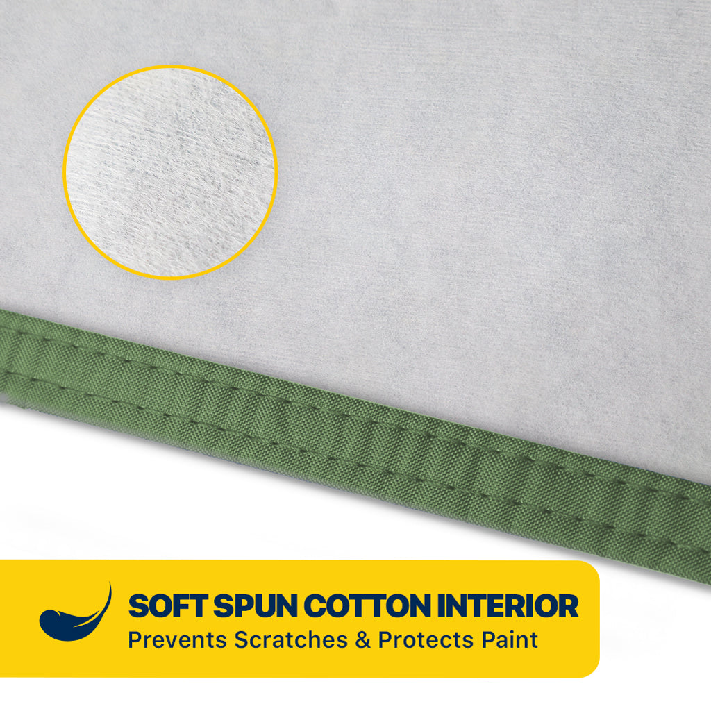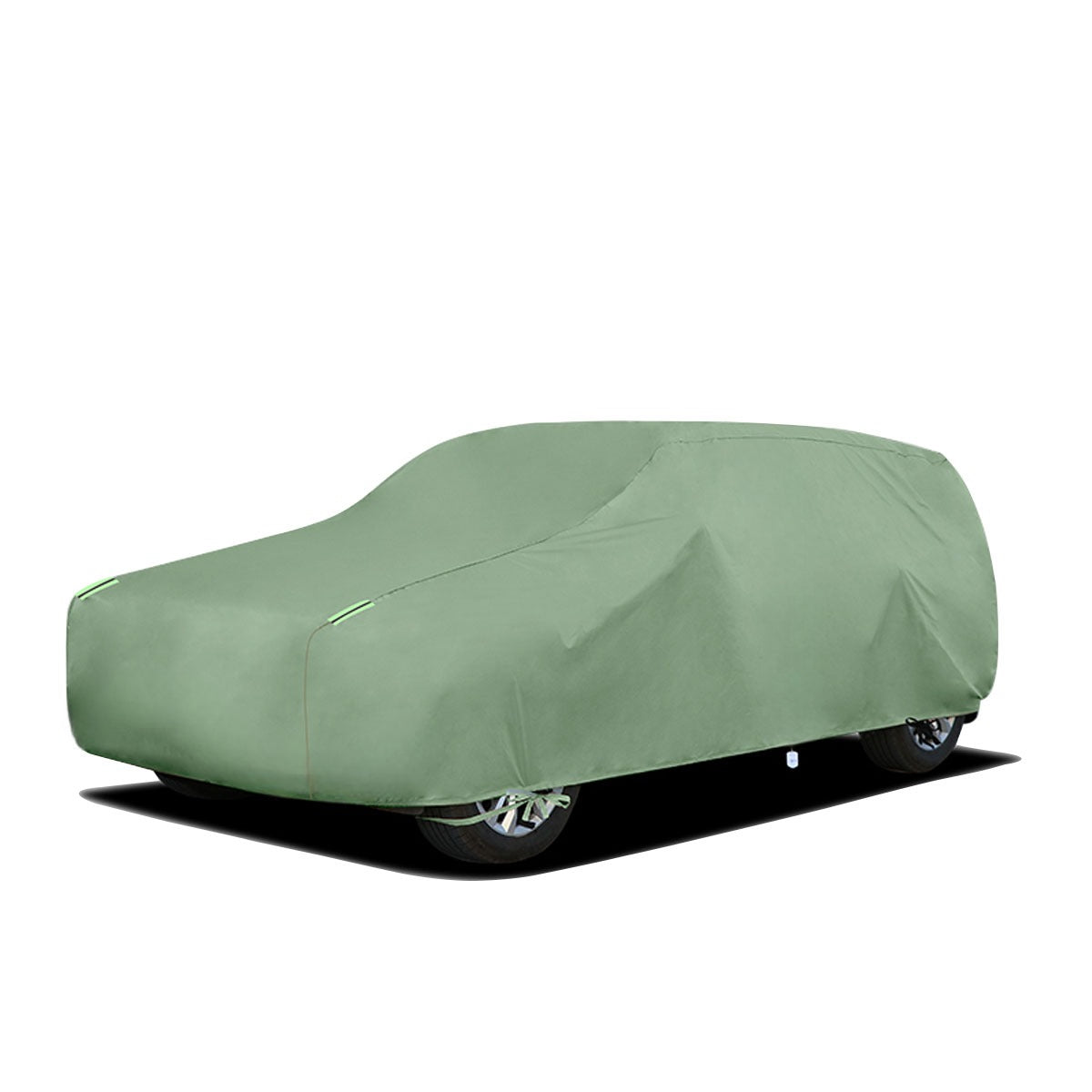 This car cover is expertly crafted to withstand all weather extremities, from desert heat to severe snow storms, ensuring your car is well-protected.Its standout feature is the 100% breathable, water-resistant material, which offers robust defense against the elements while maintaining the right balance of air circulation to keep your car in prime condition.The cover's inner layer is lined with a soft cotton fleece, thoughtfully designed to safeguard the paint and finish of your vehicle.We guarantee a perfect fit on your vehicle, or you will receive a full refund.