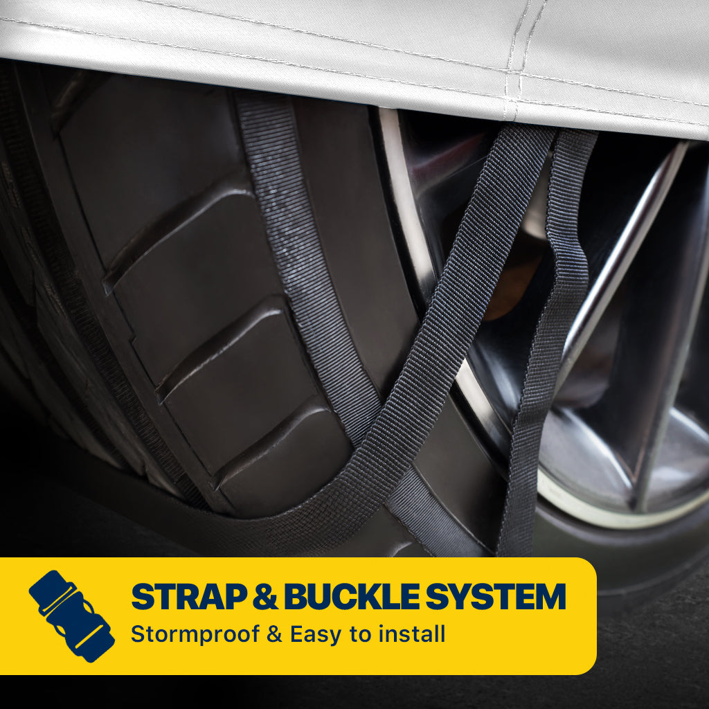 Heavy-duty straps and buckles keep the cover locked in place even in strong winds and storms.